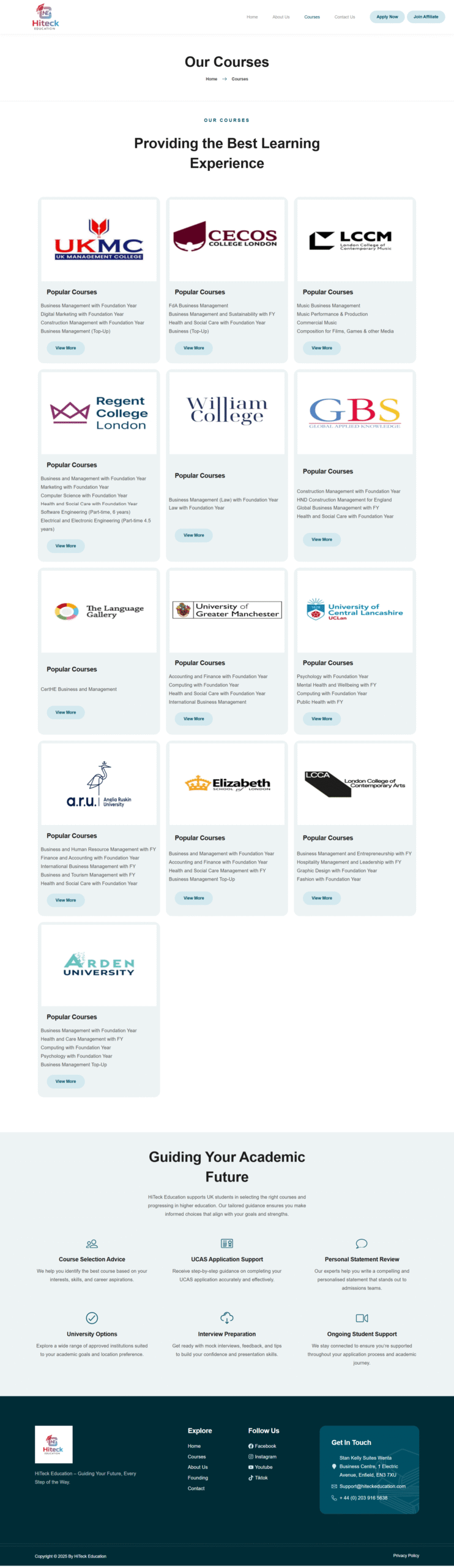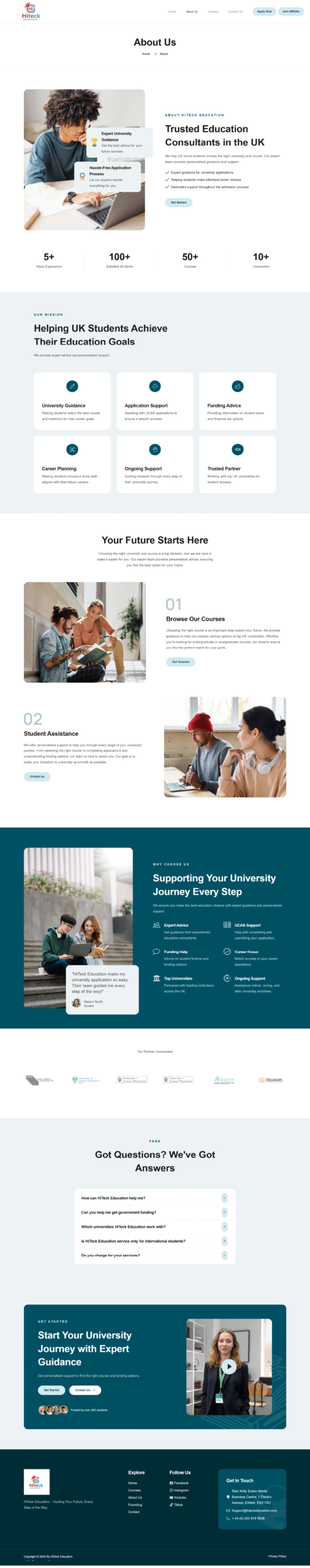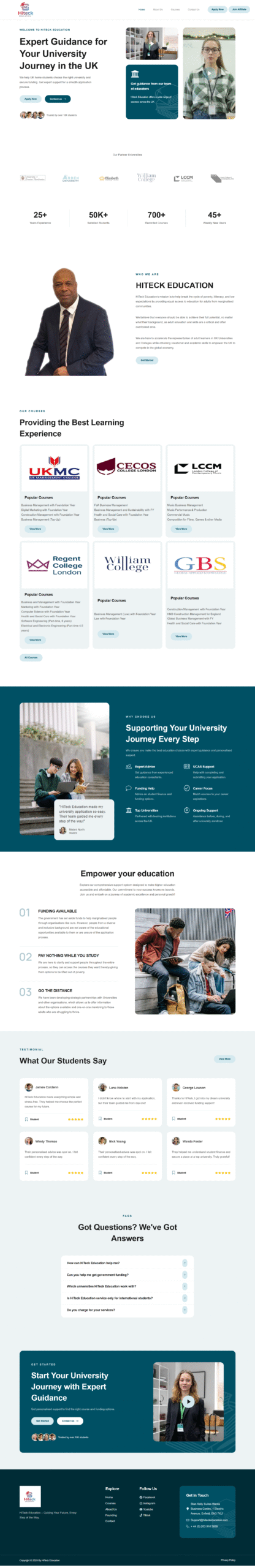 I designed and developed a modern, user-centric website for HiTeck Education, an educational consultancy focused on supporting students and showcasing their range of services. The goal was to create a professional, trustworthy platform that simplifies access to information on programs, admissions, and resources while driving engagement and conversions.